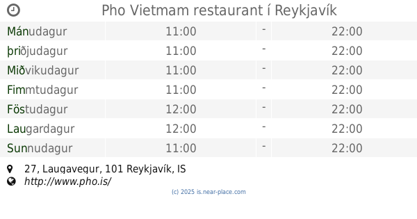 | Laugardagur | lokað | |||||